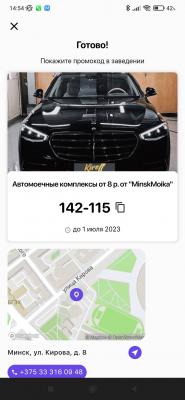 - Промокод дает право на скидку до 27% на автомоечные комплексы, химчистку от "MinskMoika"