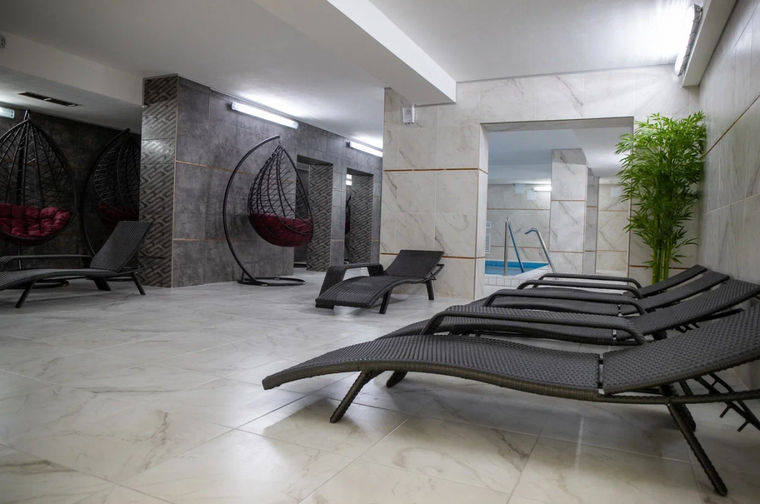 ✅зона отдыха с подвесными креслами.