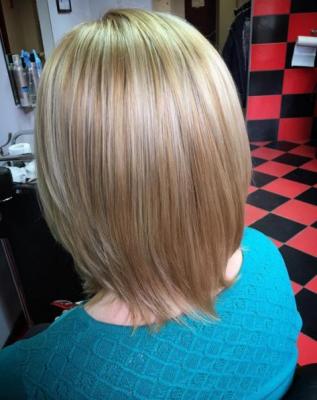 Исходный цвет на фото, длина волос до плеч.