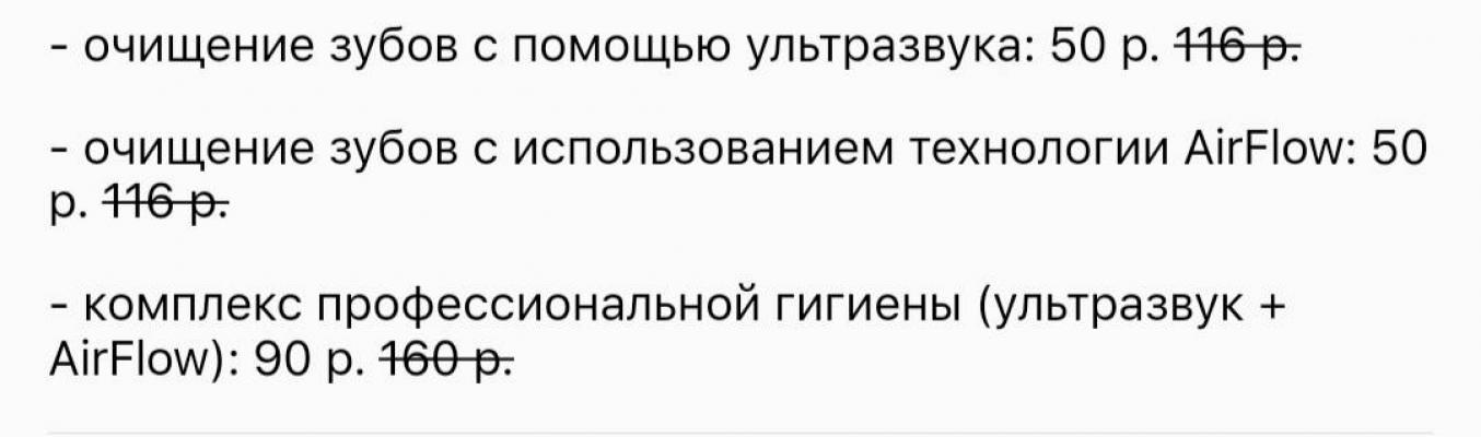 - комплекс профессиональной гигиены (ультразвук + AirFlow): 140 р. 200 р.