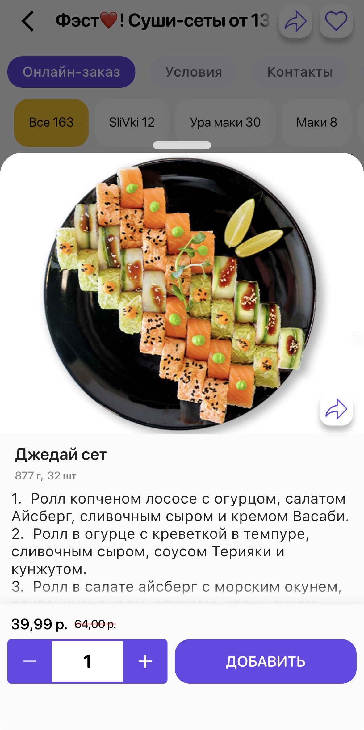- Стоимость сета (1175 г, 40 шт):