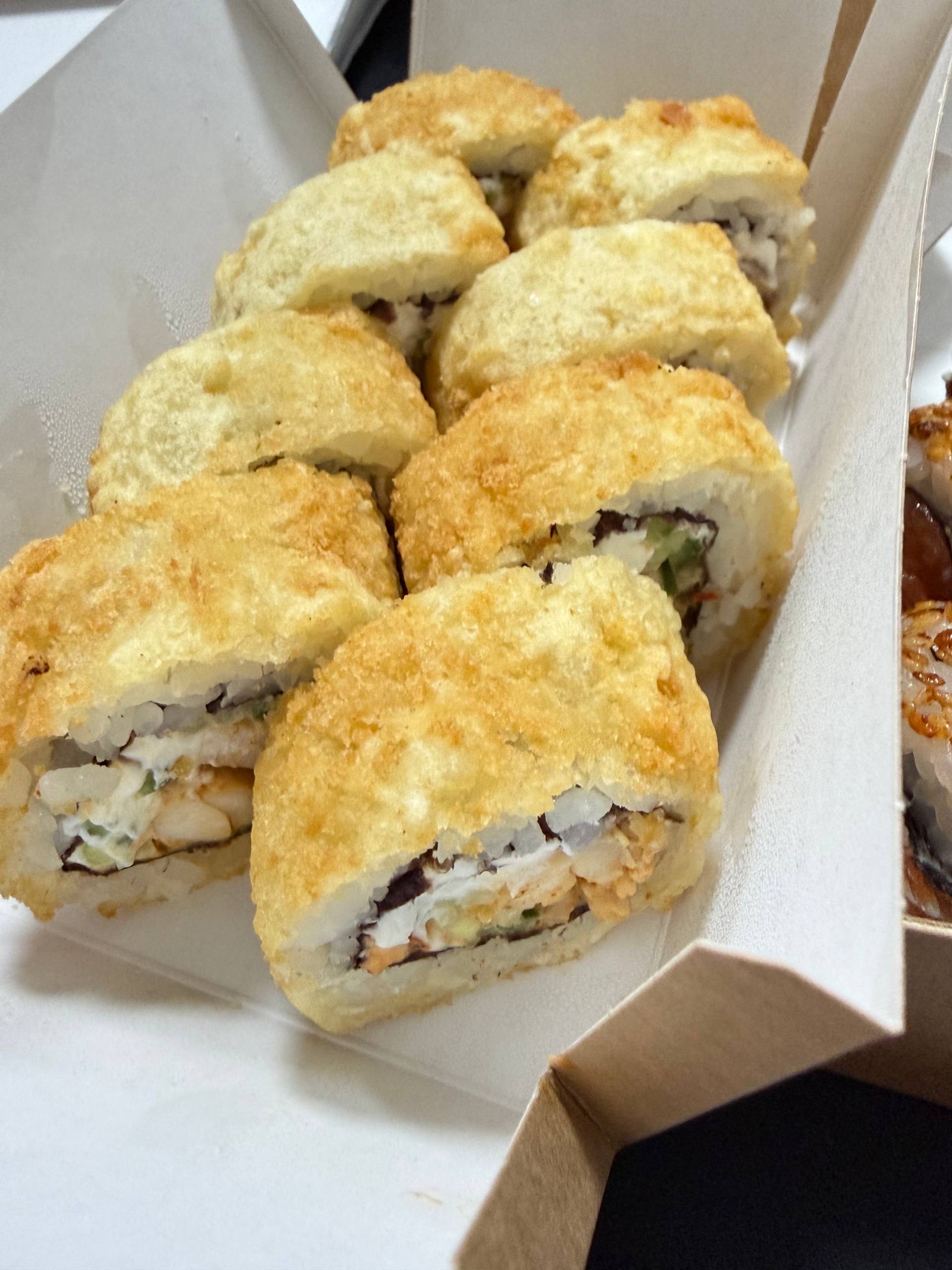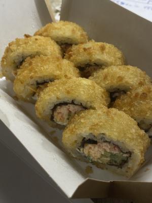 Состав: копченый лосось, темпура, лосось жаренный в соусе терияки, майонез