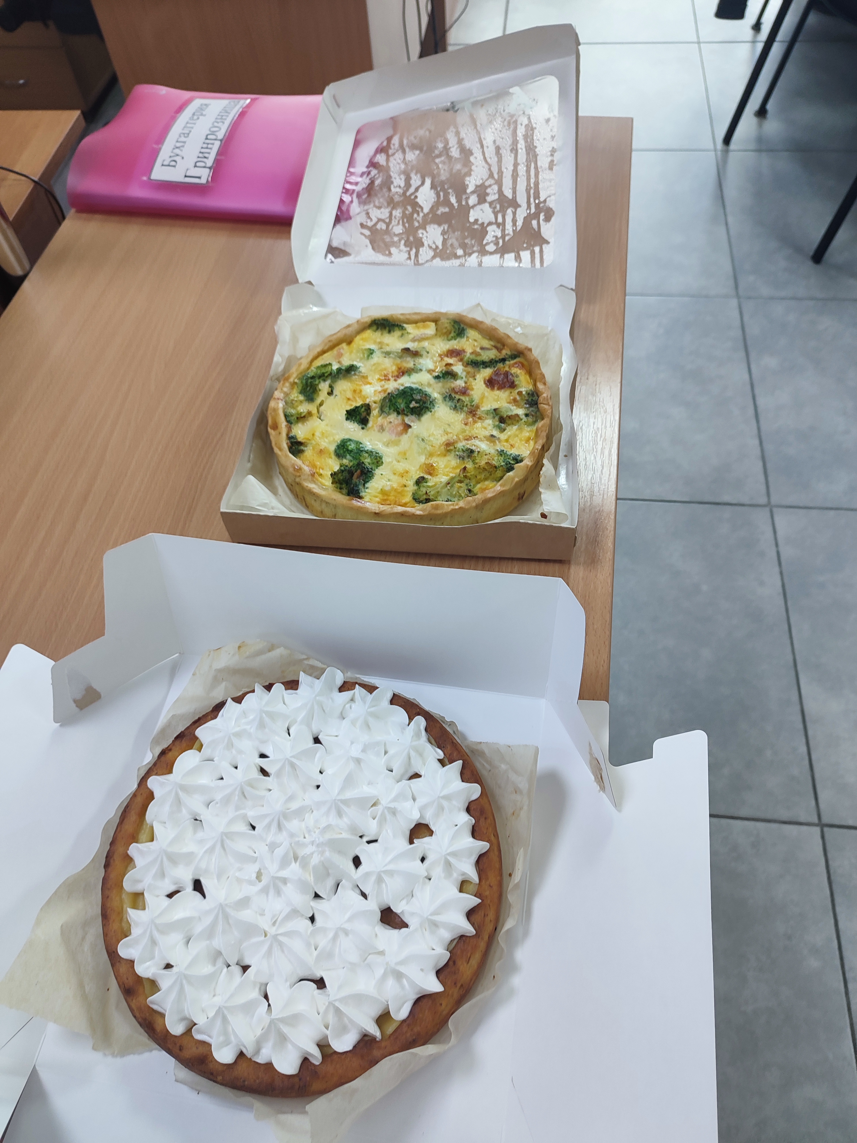 Добрый день! Покупали на офис к дню рождения пирог с курицей и грибами и пирог с ветчиной-все изумительно-начинки много ,тесто воздушное!! Очень понравился пирог с фетой и оливками (так же покупали)-все нежное , не пересоленое-как домашнее!!! Торт с меренгой и ананасами-необыкновенно воздушный и легкий! Огромное спасибо ! Праздник удался!
