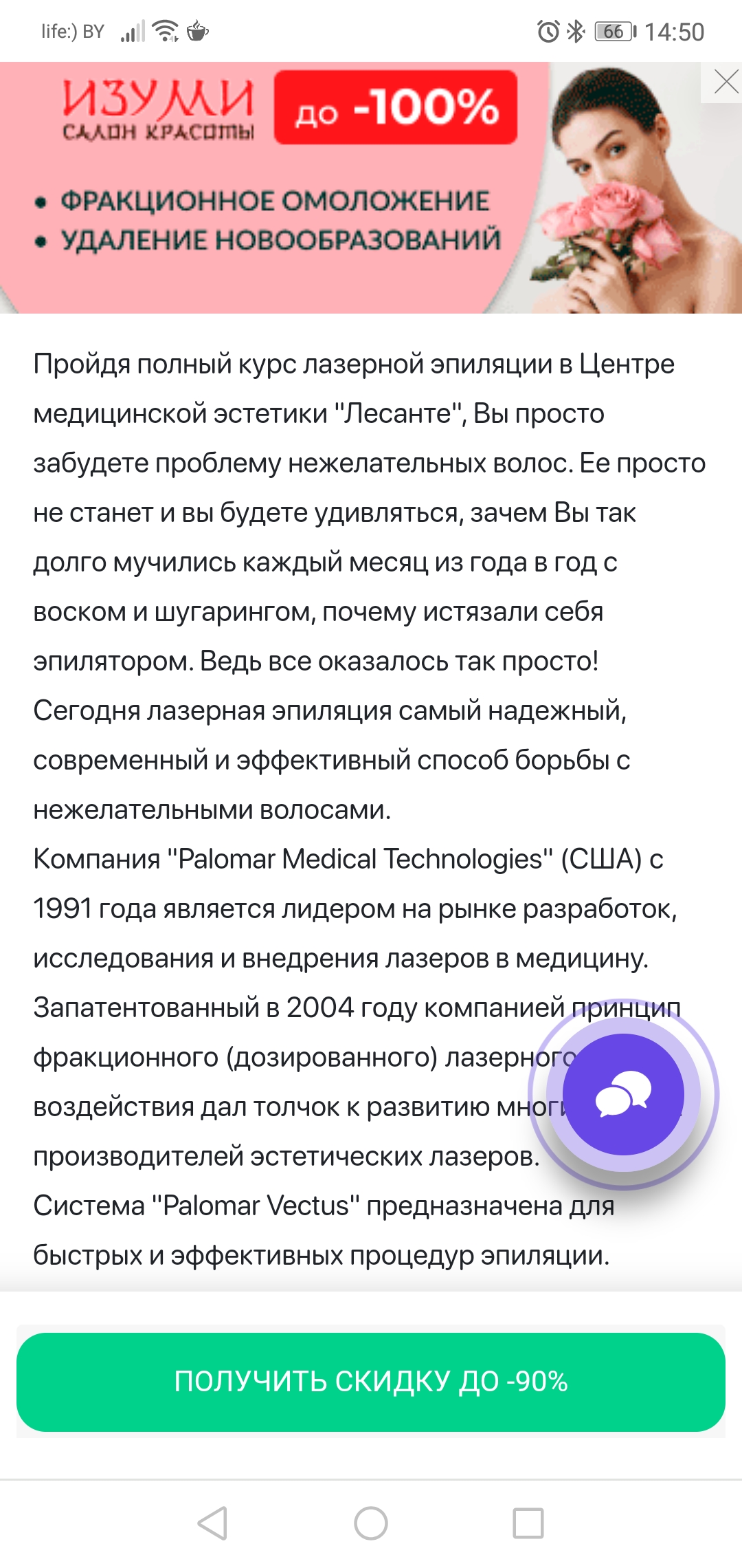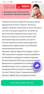 - Промокод также дает право на скидку до 90% на лазерную эпиляцию отдельных зон в центре эстетики "Лесанте"