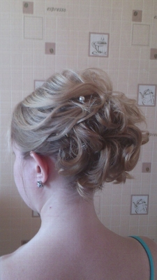 Делала у Натальи вечернюю прическу. Хоть волосы у меня совсем не длинные и достаточно тонкие, эффект получился такой, как будто у меня копна густых волос. При этом прическа получилась естественной, легкой и в то же время держалась весь вечер. Я осталась очень довольна!