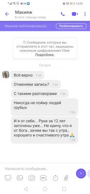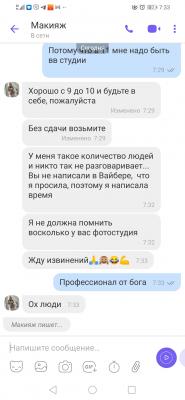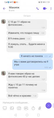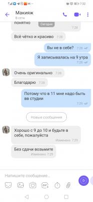 Такого трэша я ещё не встречала! Рассказываю: записалась я вчера к Наталье на макияж, два раза с ней созвонились, уточнила время - конкретно к 9 утра, так как в 11 мне надо быть уже в студии. Наталья на вайбер присылает мне адрес. Ну думаю, вопрос решён.