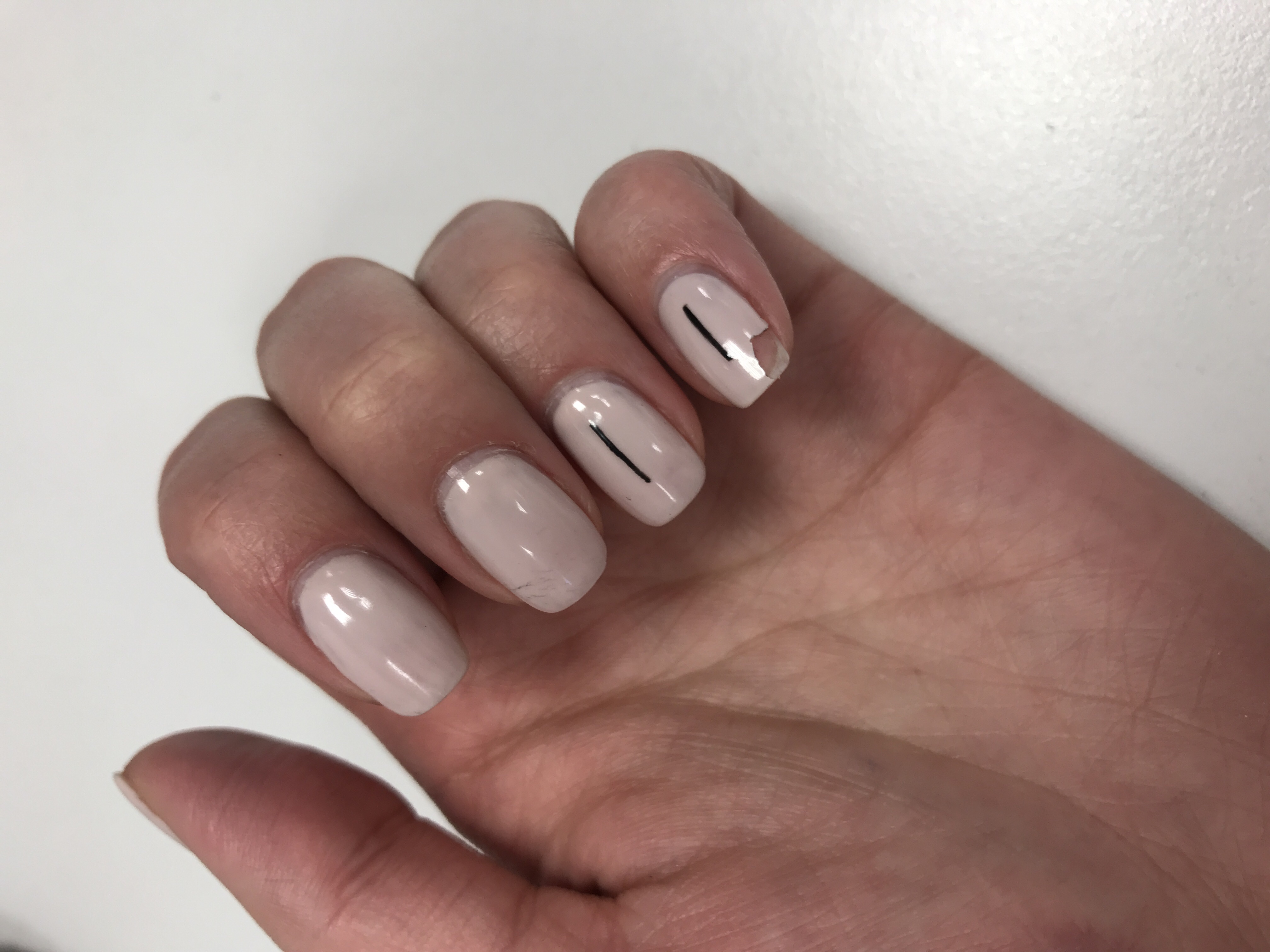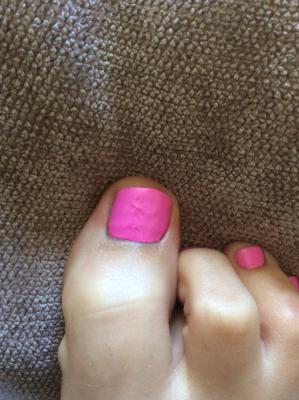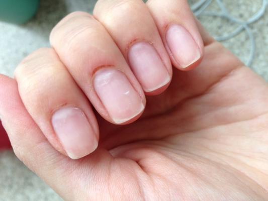 Итог спешки - плохо обрезанная кутикула с лаком на ней, на 2й день на многих пальцах лак по бокам уже сходил.