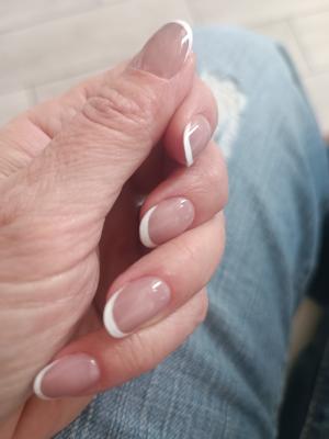 - коррекция ногтей + долговременное покрытие френч: