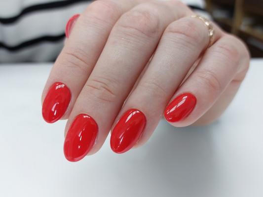 - наращивание ногтей + долговременное однотонное покрытие: