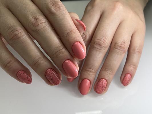 - коррекция ногтей + долговременное однотонное покрытие: