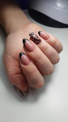 - коррекция ногтей + долговременное покрытие френч: