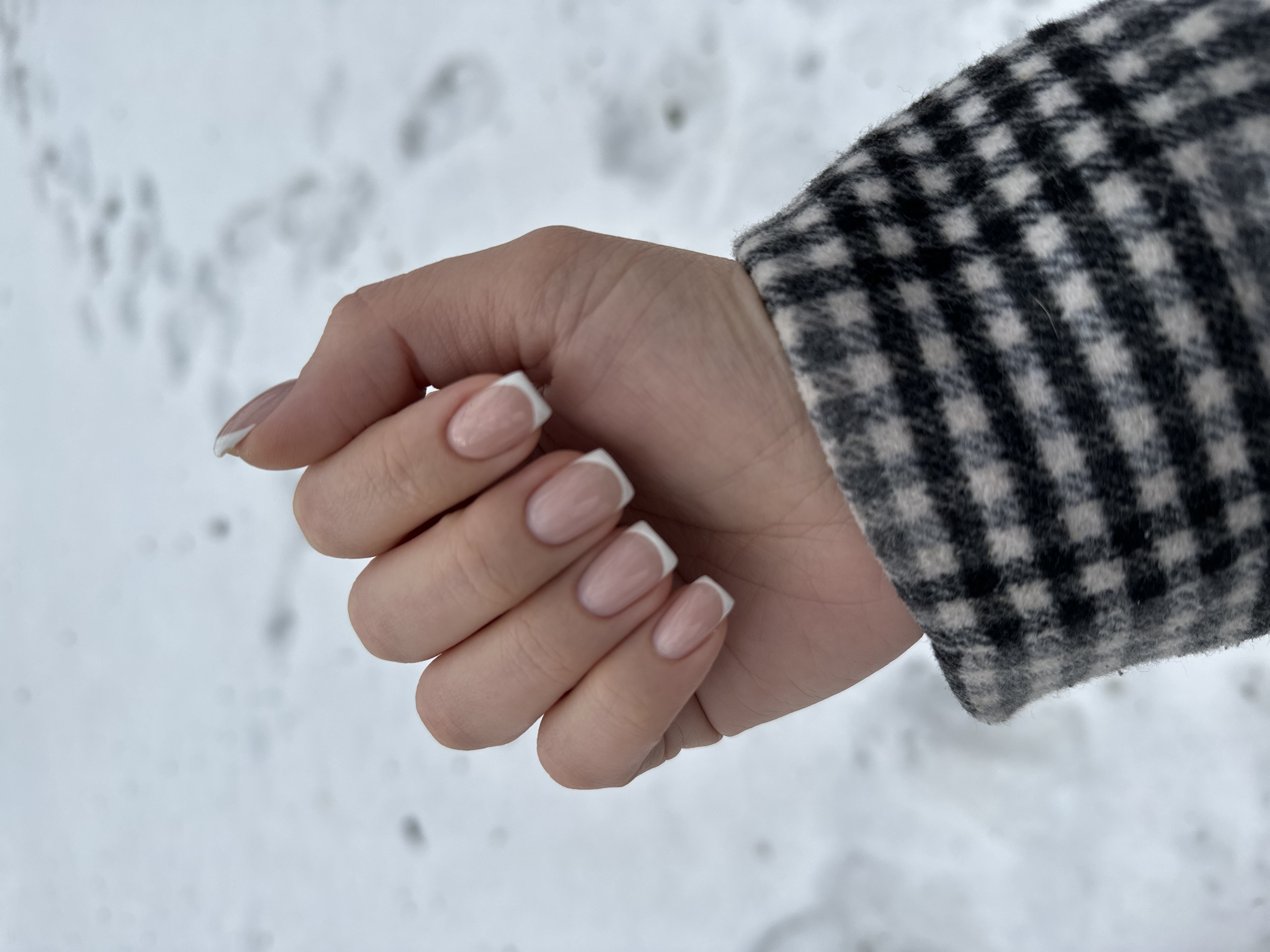 - наращивание ногтей + долговременное покрытие френч:
