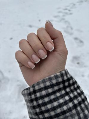 - коррекция ногтей + долговременное покрытие френч: