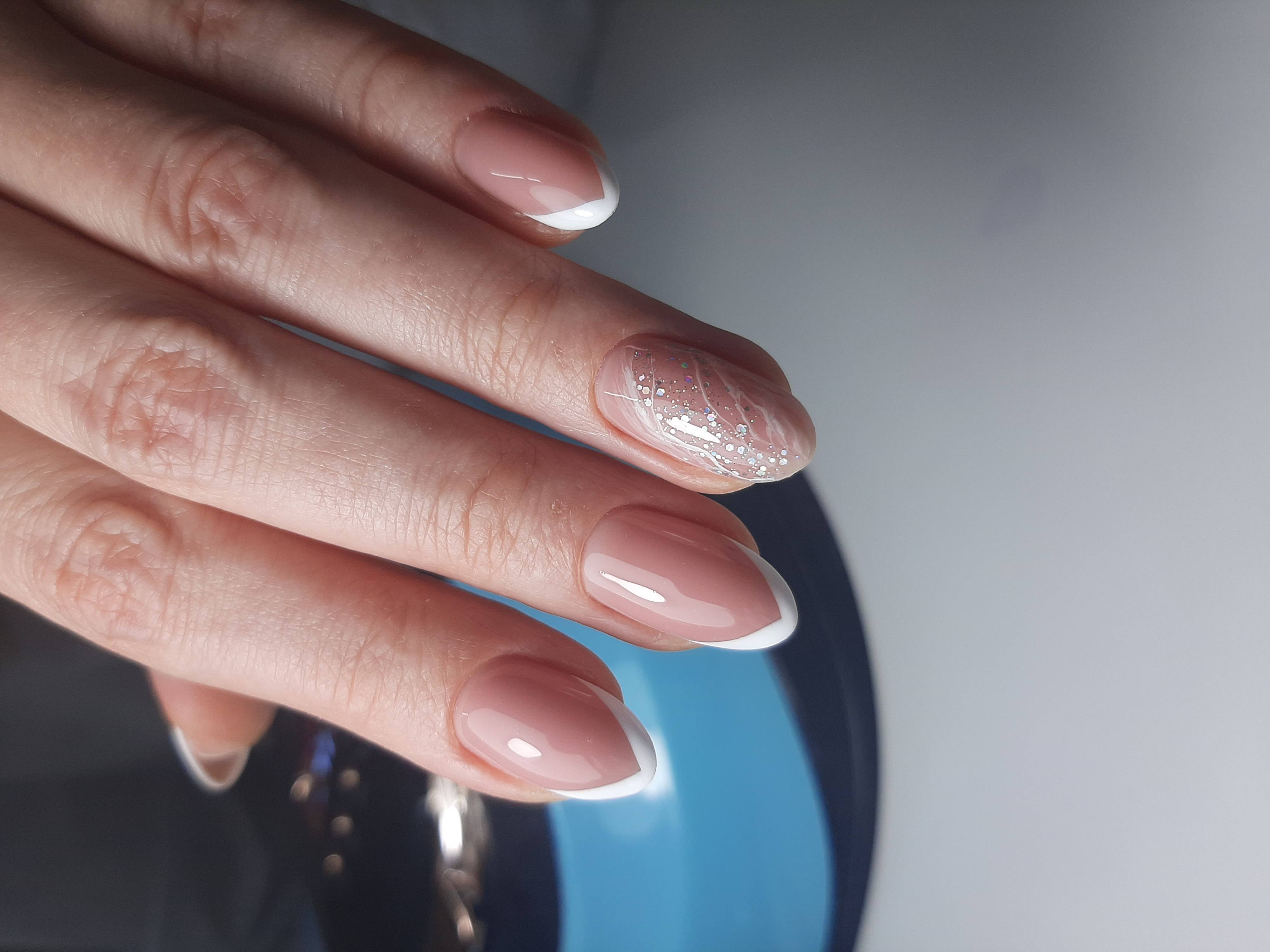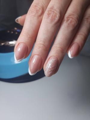 - наращивание ногтей + долговременное покрытие френч: