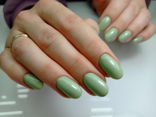 - наращивание ногтей + долговременное однотонное покрытие: