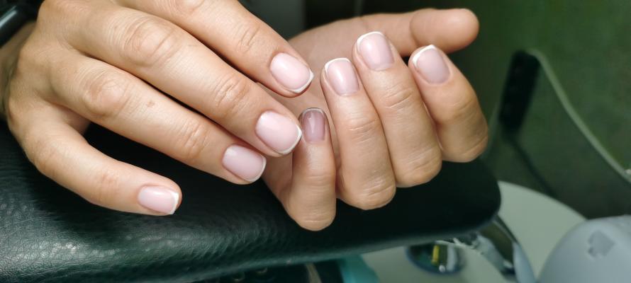 - наращивание ногтей + долговременное покрытие френч: