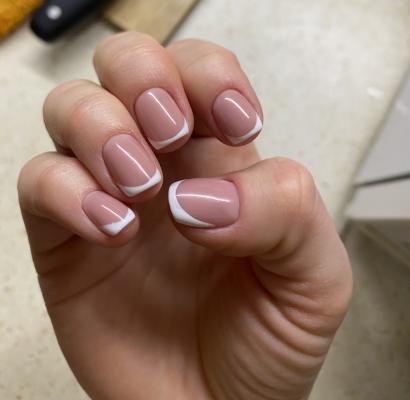 - наращивание ногтей + долговременное покрытие френч: