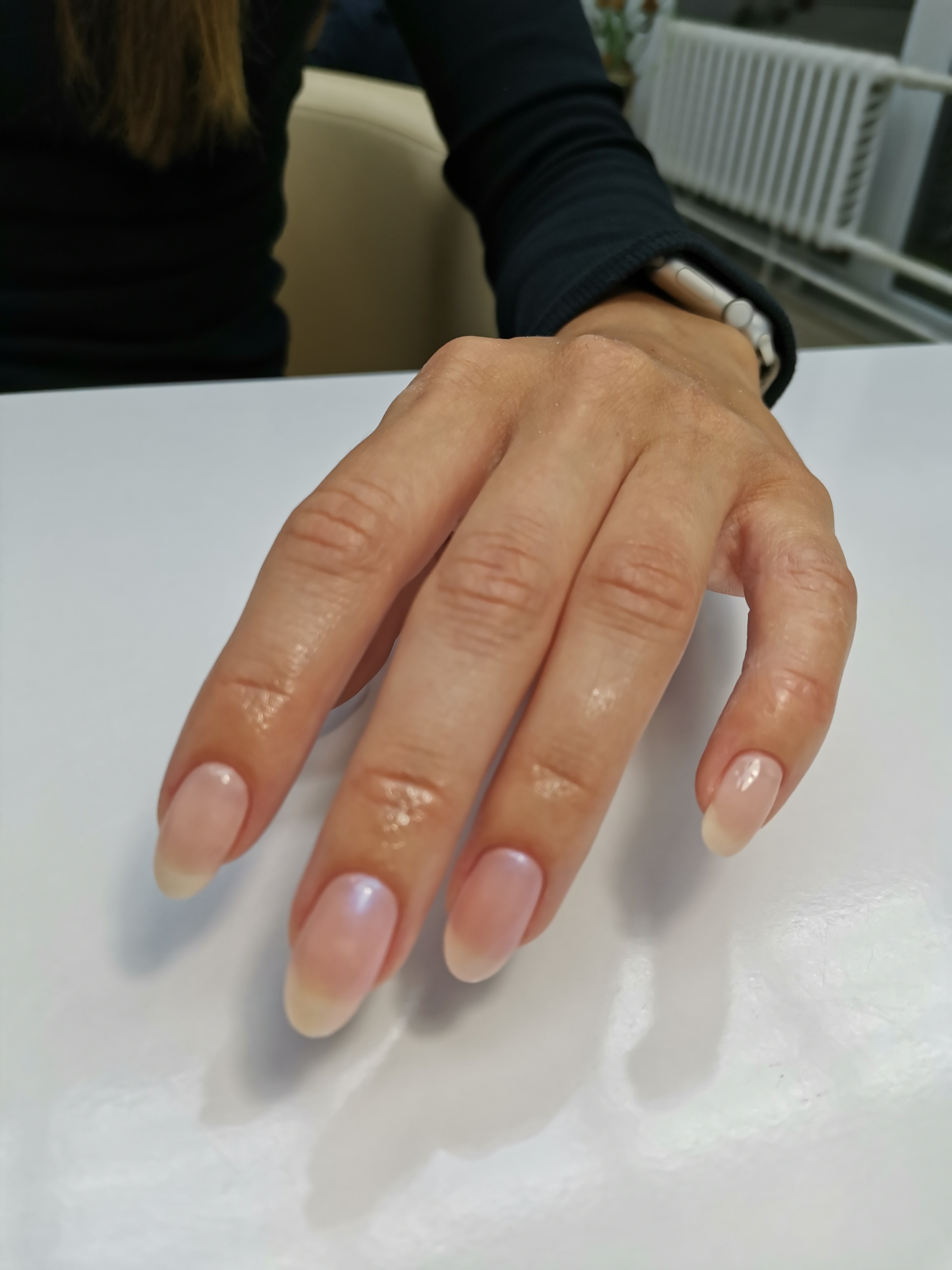 - наращивание ногтей + долговременное однотонное покрытие: