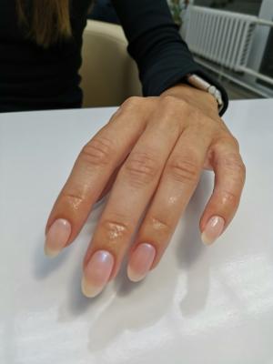 - коррекция ногтей + долговременное покрытие френч: