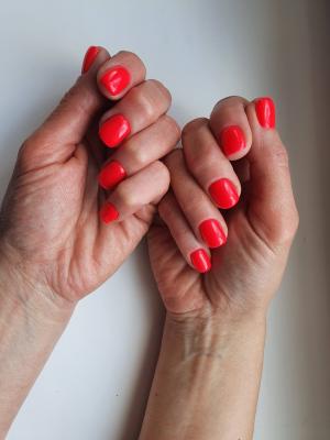 - снятие старого покрытия фрезой, придание формы ногтям, гигиеническая обработка кутикулы и боковых валиков аппаратным способом с использованием абразивных стерильных фрез, или комбинированным способом (фрезы + ножнички/кусачки), однотонное покрытие ногтей гель-лаком, масло для кутикулы