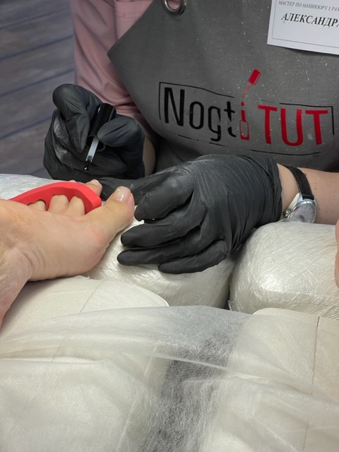 - нанесение масла для кутикулы, массаж стоп с кремом для ног