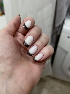 Первый раз делала чёрный френч на молочной базе! Попыталась сфотографировать эту красоту, но фото не может передать эту красоту! Мастер Дарья просто сделала мое новогоднее настроение, очень я довольна! Спасибо за новогодние подарочки от салона!