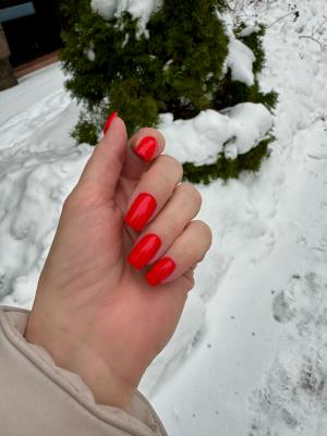 Великолепный красный цвет, моя любовь!! Я клиент этого салона и первый раз была у мастера Анны, всё аккуратно, быстро и красиво!