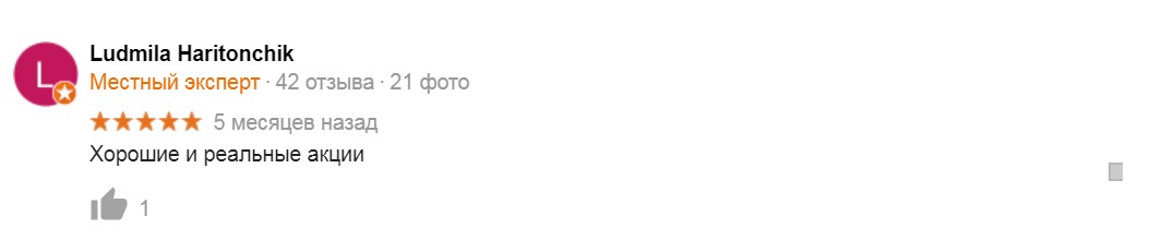 Отзывы пользователя к этой акции