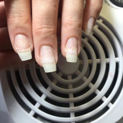 20 февраля вы пришли в салон с истонченными ногтями с изломами. При снятии старого покрытия ногти были болезненны и по вашему желанию был оставлен слой базы. Поражение ногтя большого пальца видны на фото. Рекомендации мастера ( очень хорошего мастера) по уменьшению длины и снятию отслоек вы не захотели слушать.