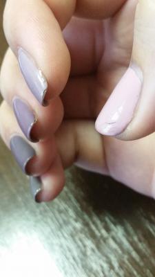Несколько раз делала маникюр/педикюр в данном салоне. Всегда все было на высшем уровне! Ходила к Наталье. Кутикула выглядела ухоженно на протяжении 3х недель, покрытие также носилось отлично. Замечательный мастер!!! Увы, она больше не работает. Сходила на маникюр к другому мастеру. Девушка старалась, результат был неплох, но мое счастье длилось неделю... Кутикула выглядит очень не очень, уголки покрытия скололись, на больших пальцах самое светлое покрытие вообще потрескалось посреди ногтя (такого вообще никогда не видела). Конечно, понимаю, что обычно гарантия на покрытие пару дней, но такое безобразие через 7-10 дней тоже ненормально. Надеюсь, что руководство салона поймёт мое возмущение и мы найдём компромисс. (На фото ногти через 10 дней после маникюра)