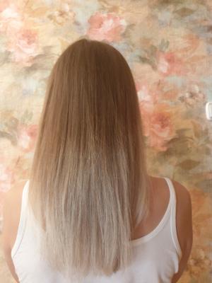 А корень мне все таки не нравится-слишком далеко начинается мелирование, спереди еще дальше, есть желтые места и смотрится неопрятно((