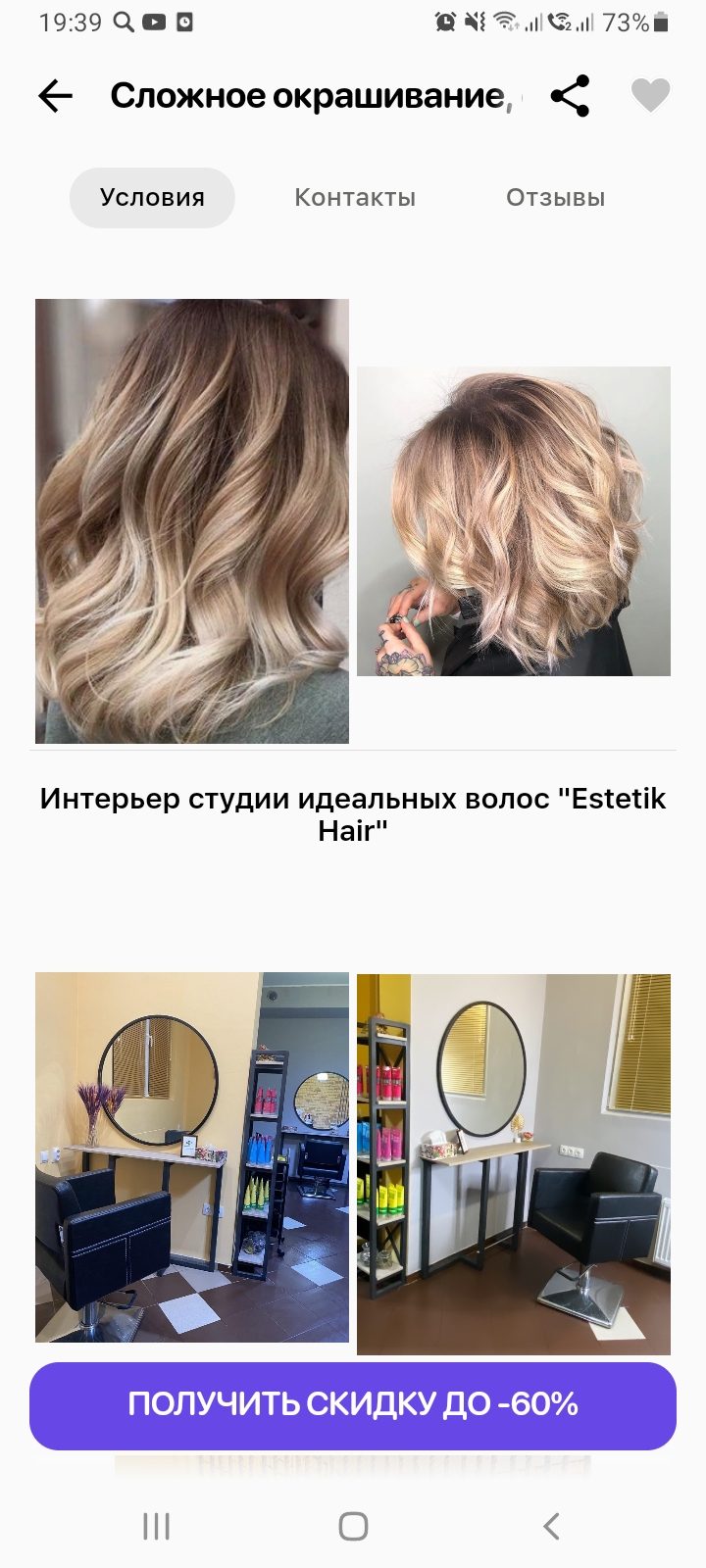 - Промокод дает право на скидку до 53% на стрижку с уходом и различные виды окрашивания в студии идеальных волос "Estetik Hair"