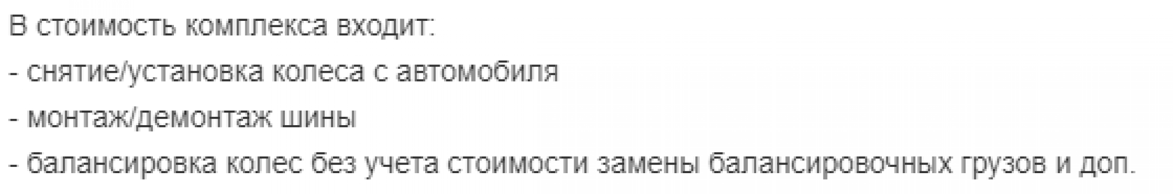 - Стоимость услуг указана за 4 колеса с заменой балансировочных грузов: