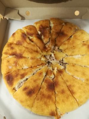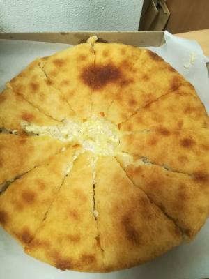 - закрытый пирог с творогом, сыром и чесноком (900 г): дрожжевое тесто, сулугуни, творог, яйца, чеснок, сливочное масло, соль, черный молотый перец