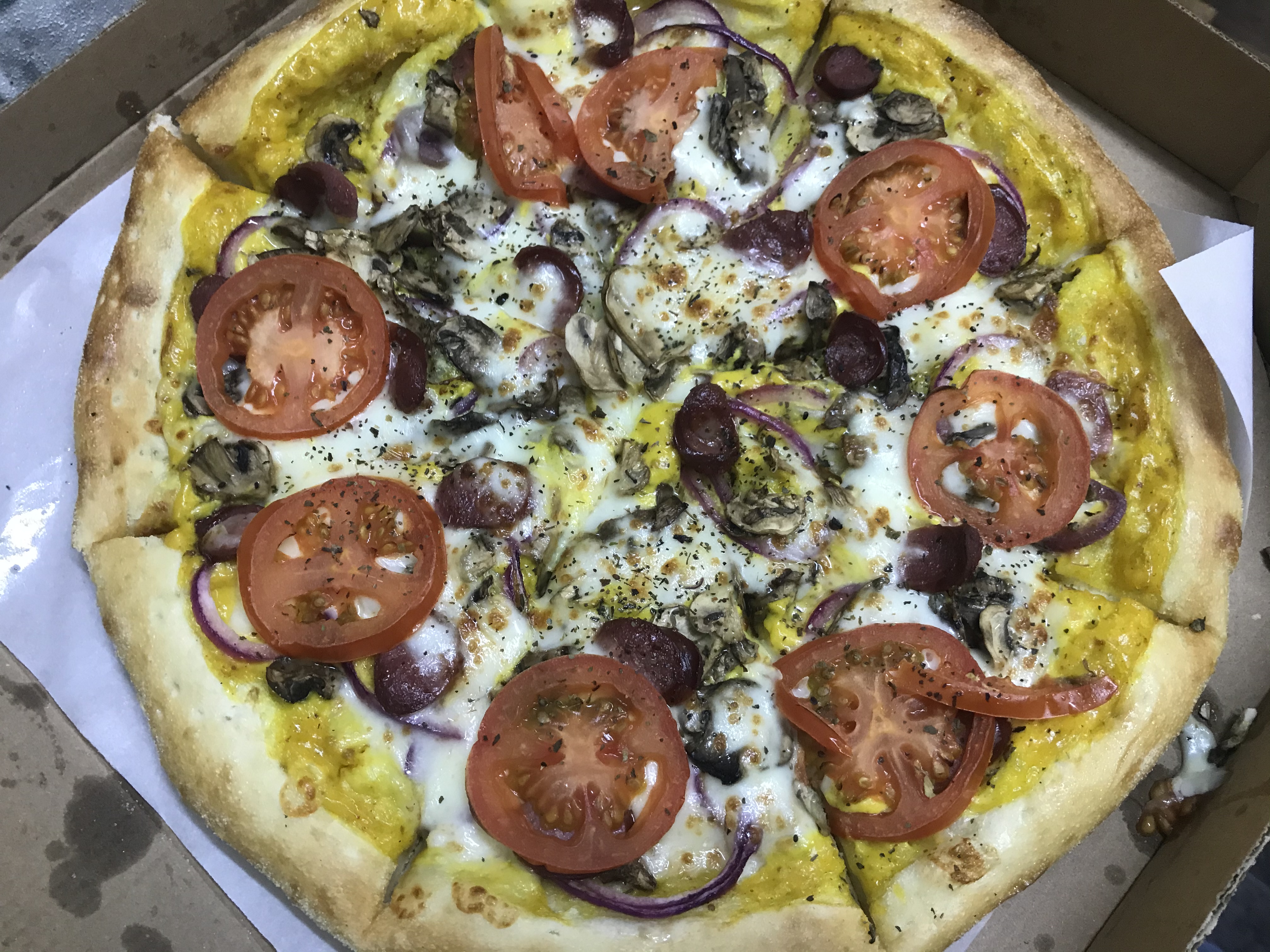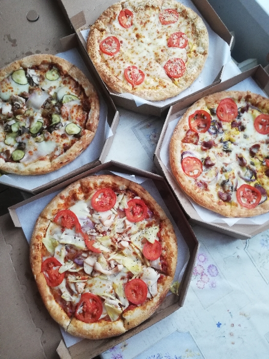 - Стоимость пицц идентична при заказе в зале и на доставку.