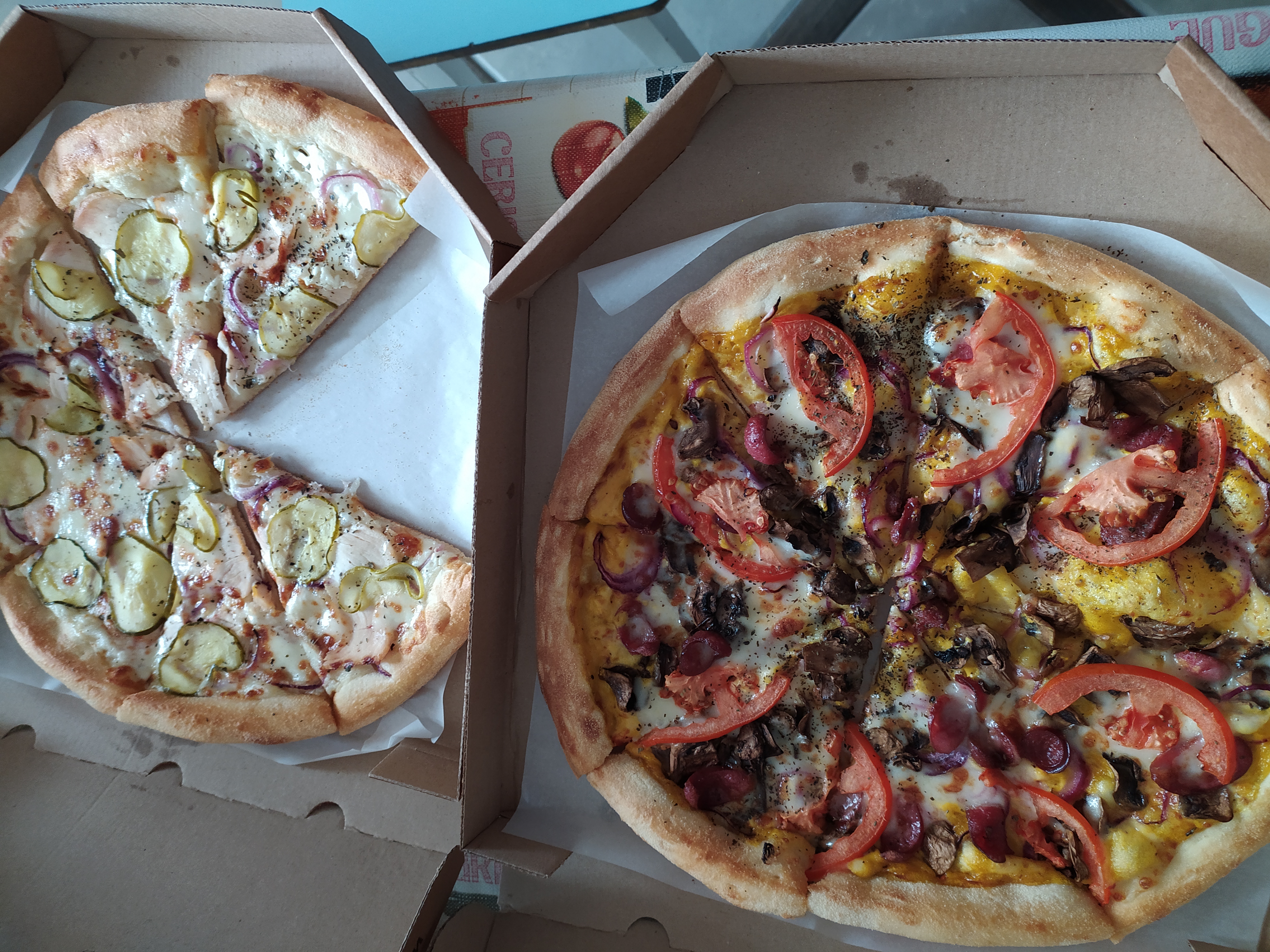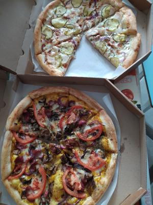 - Стоимость пицц идентична при заказе в зале и на доставку.