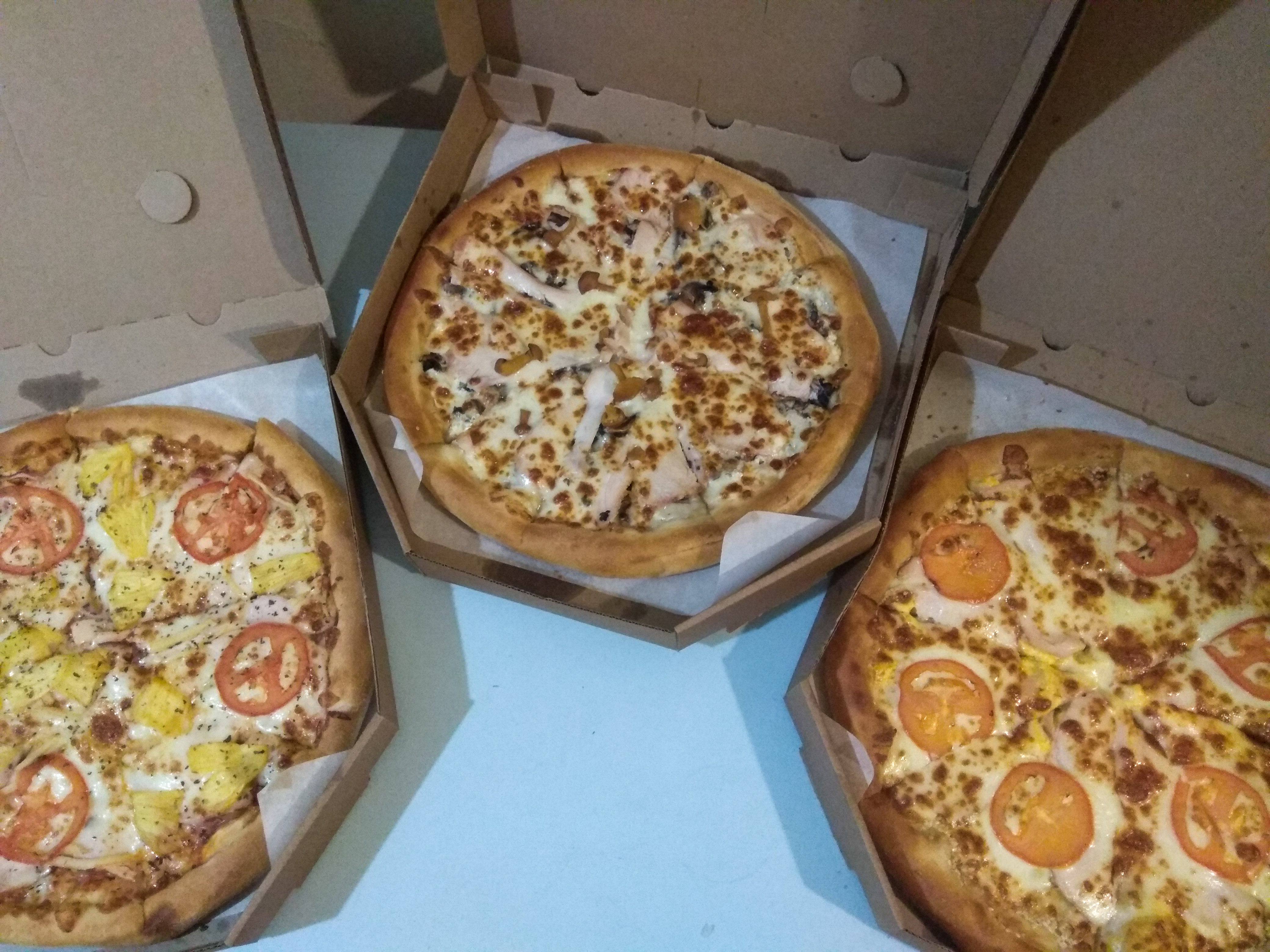 Заказываем не первый раз , очень вкусные свеженькие пиццы!!! Перепробовали уже почти все виды и каждая по своему вкусная ! Вообщем за такую цену это просто сказка! Спасибо вам