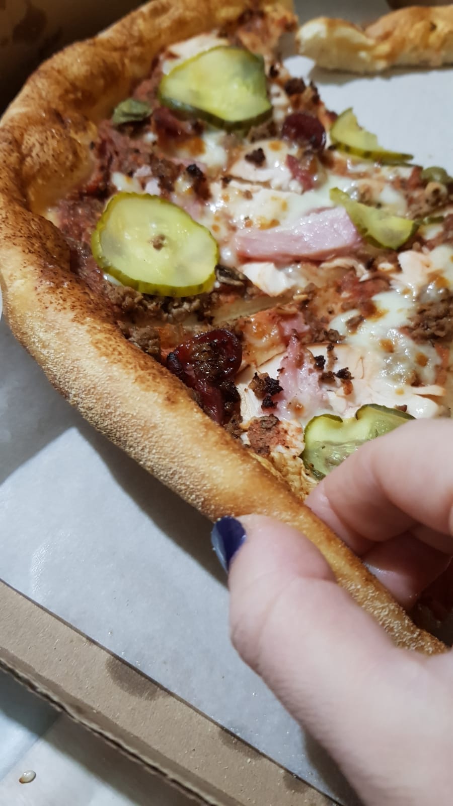 Спасибо за вкусную пиццу (заказала сет 7)! Днем сделала заказ на самовывоз с Гинтовта, 50 на вечер. Пицца тёплая и очень вкусная! Рекомендую😉