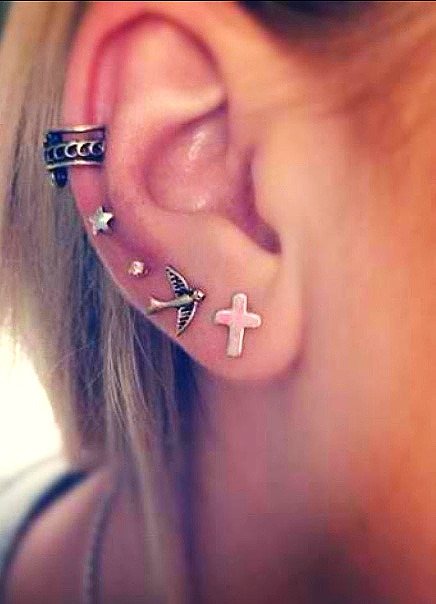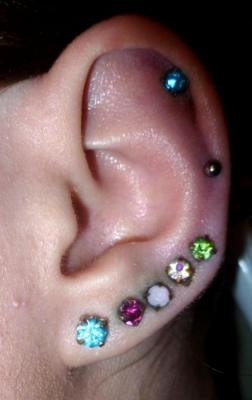 Зоны пирсинга: мочки, хрящи, козелок, септум, пуп, нос, исправление прокола.
