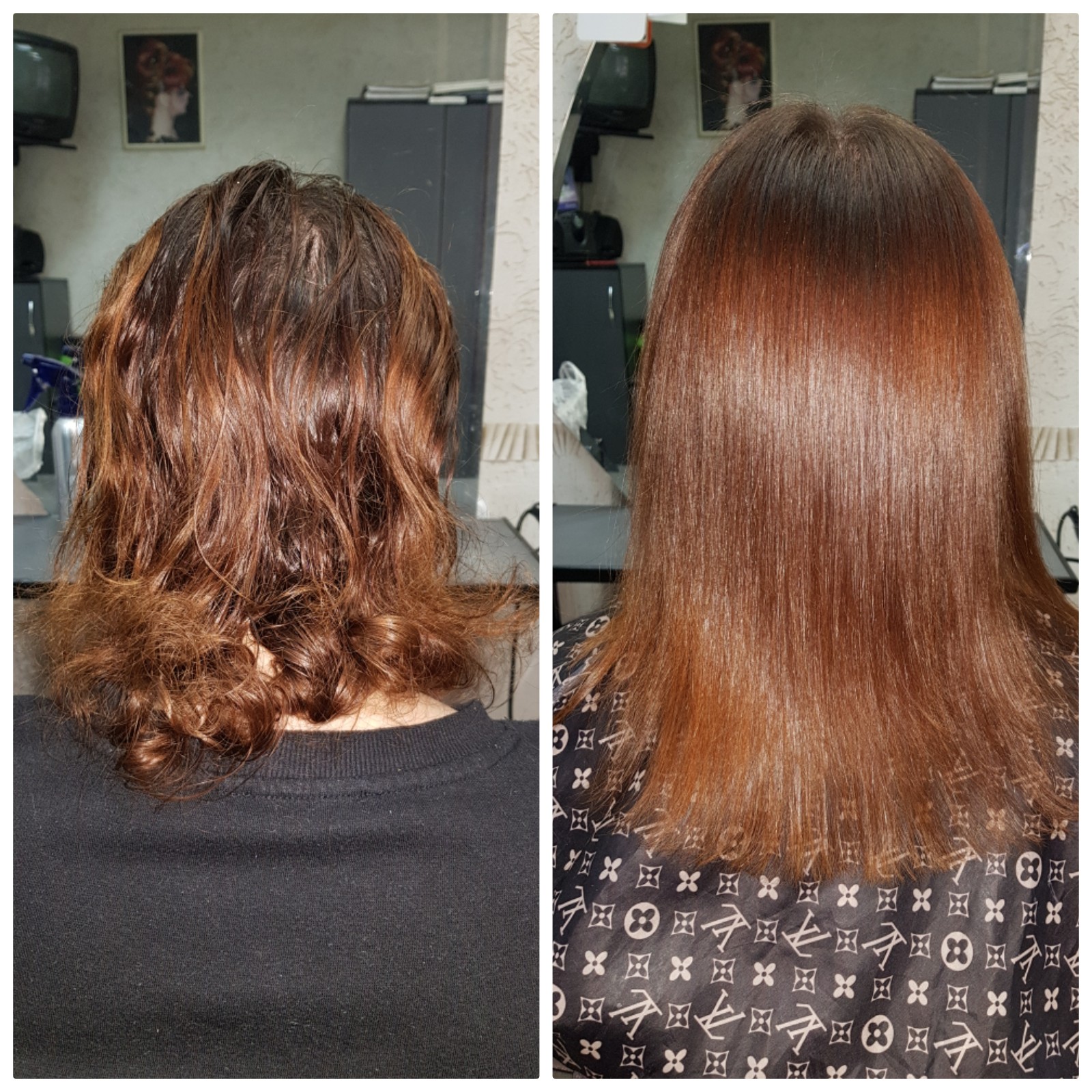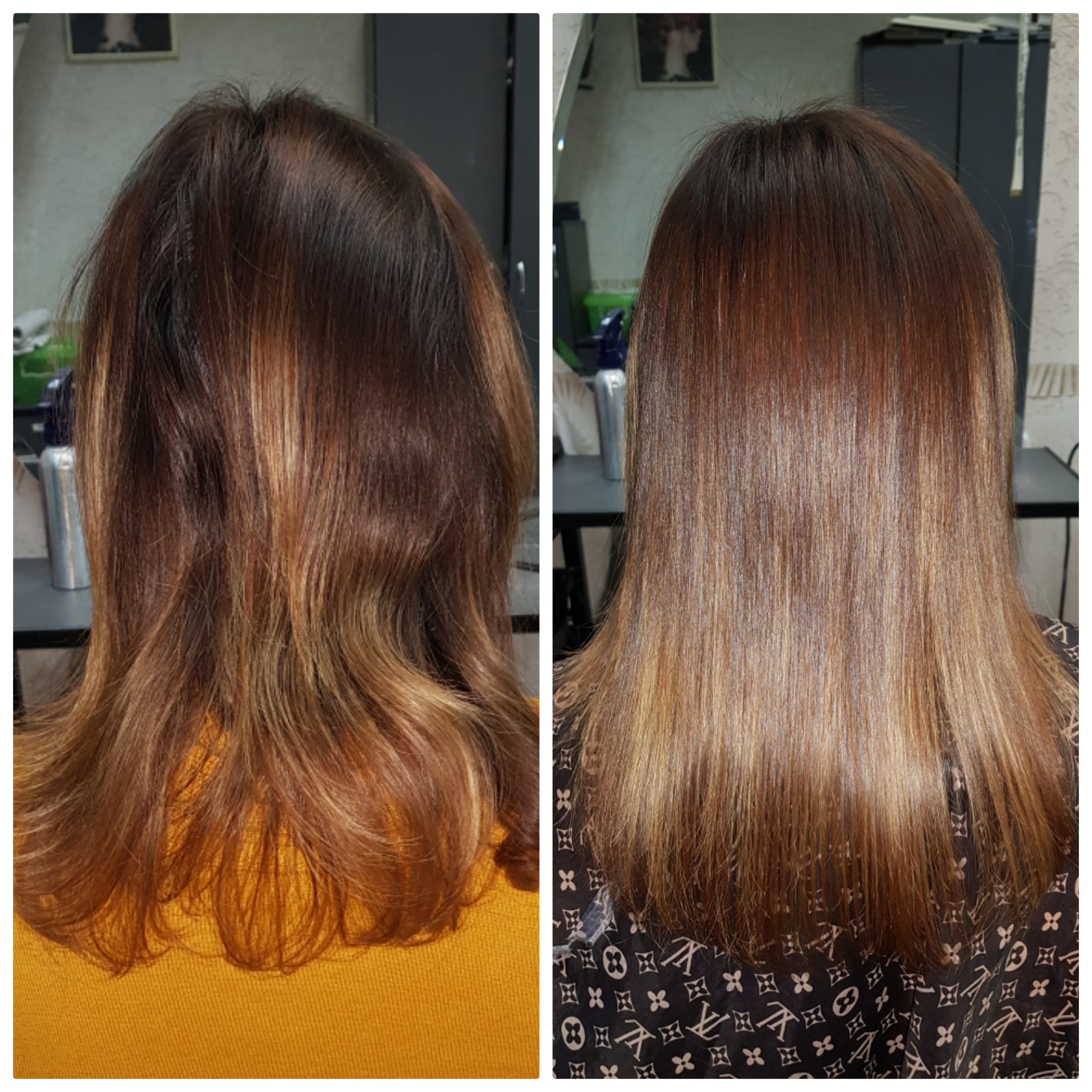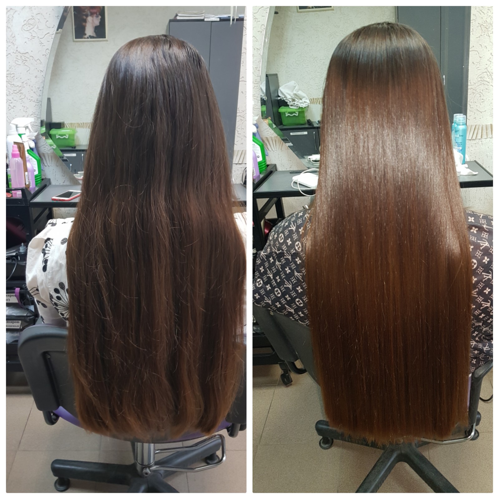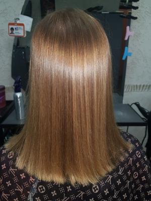 Можно красить волосы в один день с процедурой выпрямления, но окраска должна быть первой.