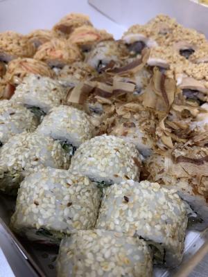 - "Манхеттен": филе лосося, сливочный сыр, авокадо, огурец, кунжут - 8 шт.