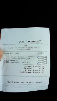 И я больше не поеду, за четыре посещения, только одно честное, в остальных приписки, после сегодняшнего посещения,вентиль поменяли ничего не сказали,грузы посчитали за четыре колеса, поставили на три по 15 грамм, это видимо плата за смазку и за стаканчик для болтов) а правка диска стоит 250000. Вроде и сделали хорошо, но развели,причем по чеку))