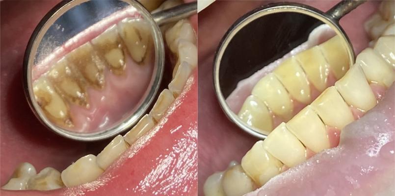 Профессиональная гигиена с использованием технологии AirFlow включает в себя: - снятие пигментированного налета с применением порошкового метода AirFlow, при котором из специальногохэнди - бластера под давлением подается профессиональный мелкодисперсный порошок - полировка зубов профессиональной щеткой и пастой - покрытие зубов фторосодержащим препаратом - Использование технологии Air Flow позволяет удалить налет от чая, кофе, так называемый "налет курильщика". С твердыми зубными отложениями (зубной камень) AirFlow не справится |