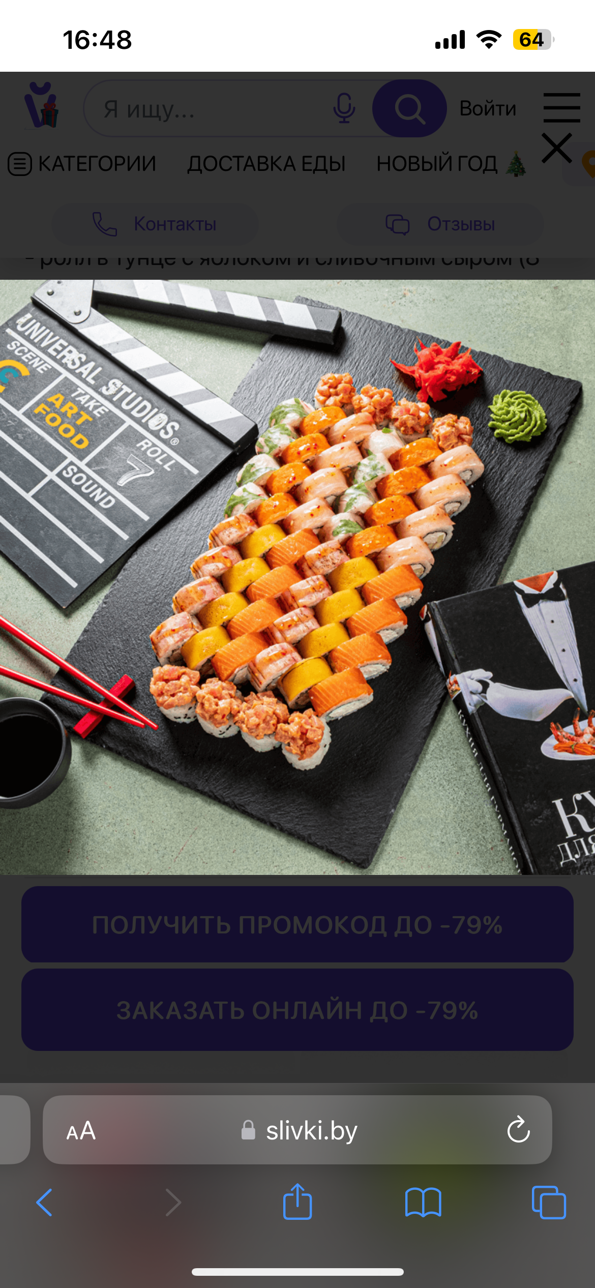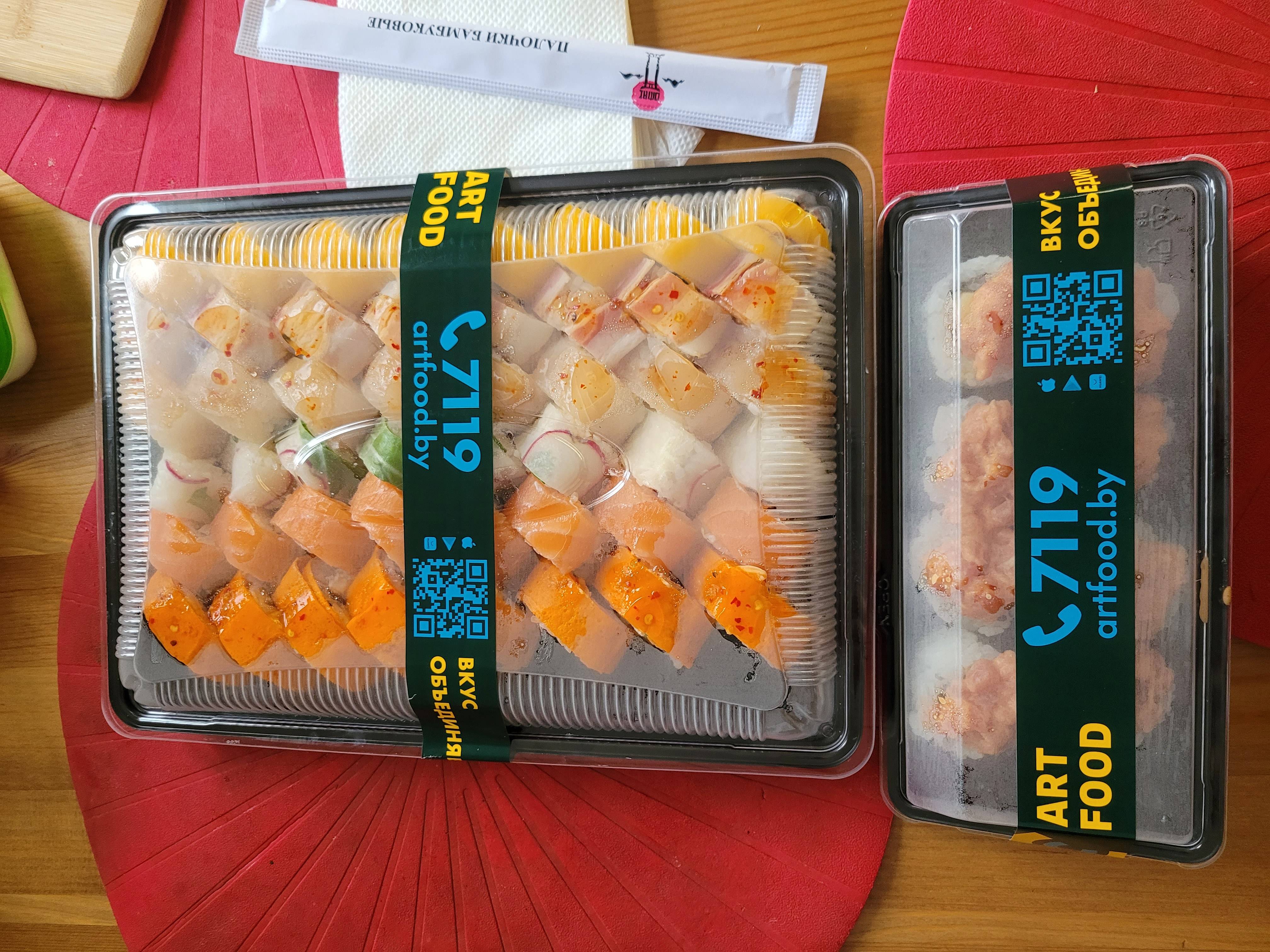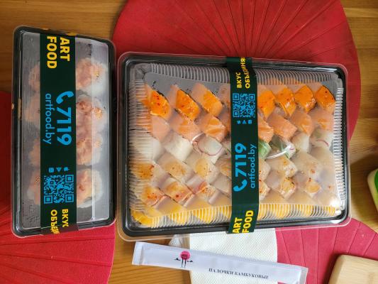 - Промокод дает право на скидку до 60% на суши-сеты от "ART FOOD"
