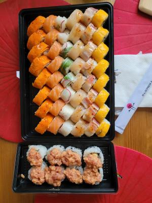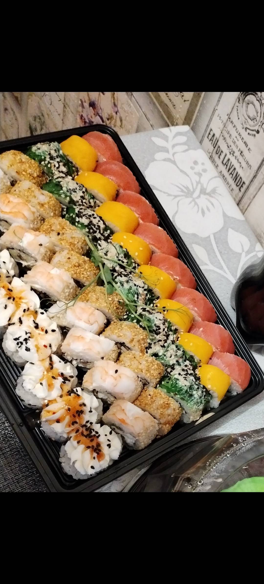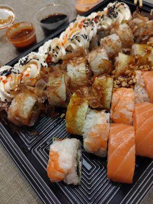 - На 1 суши-сет прилагается не более 4 комплектов палочек