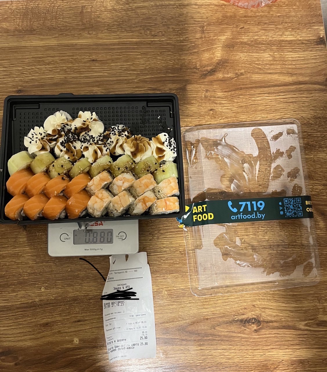 - Промокод дает право на скидку до 60% на суши-сеты от "ART FOOD"