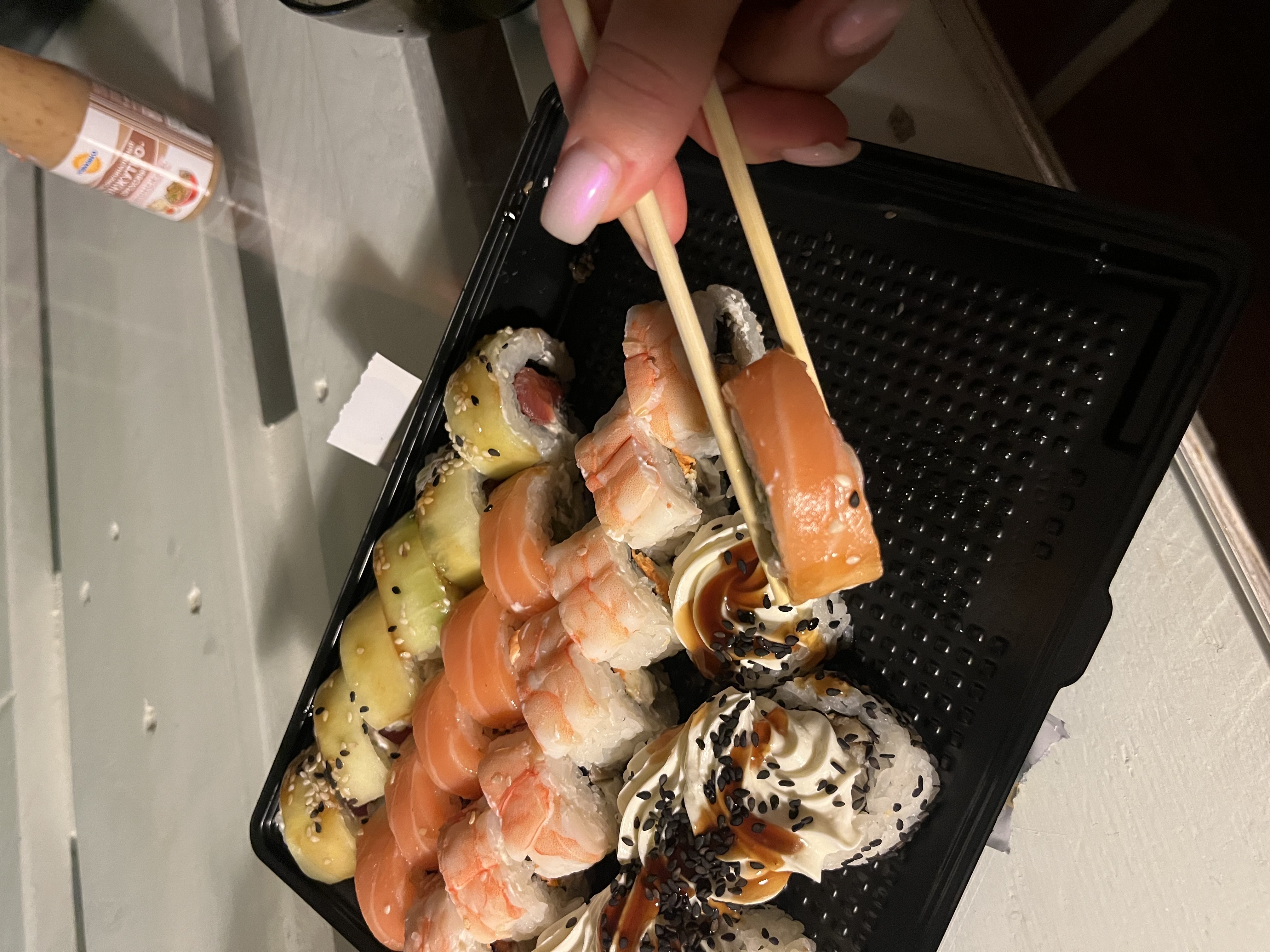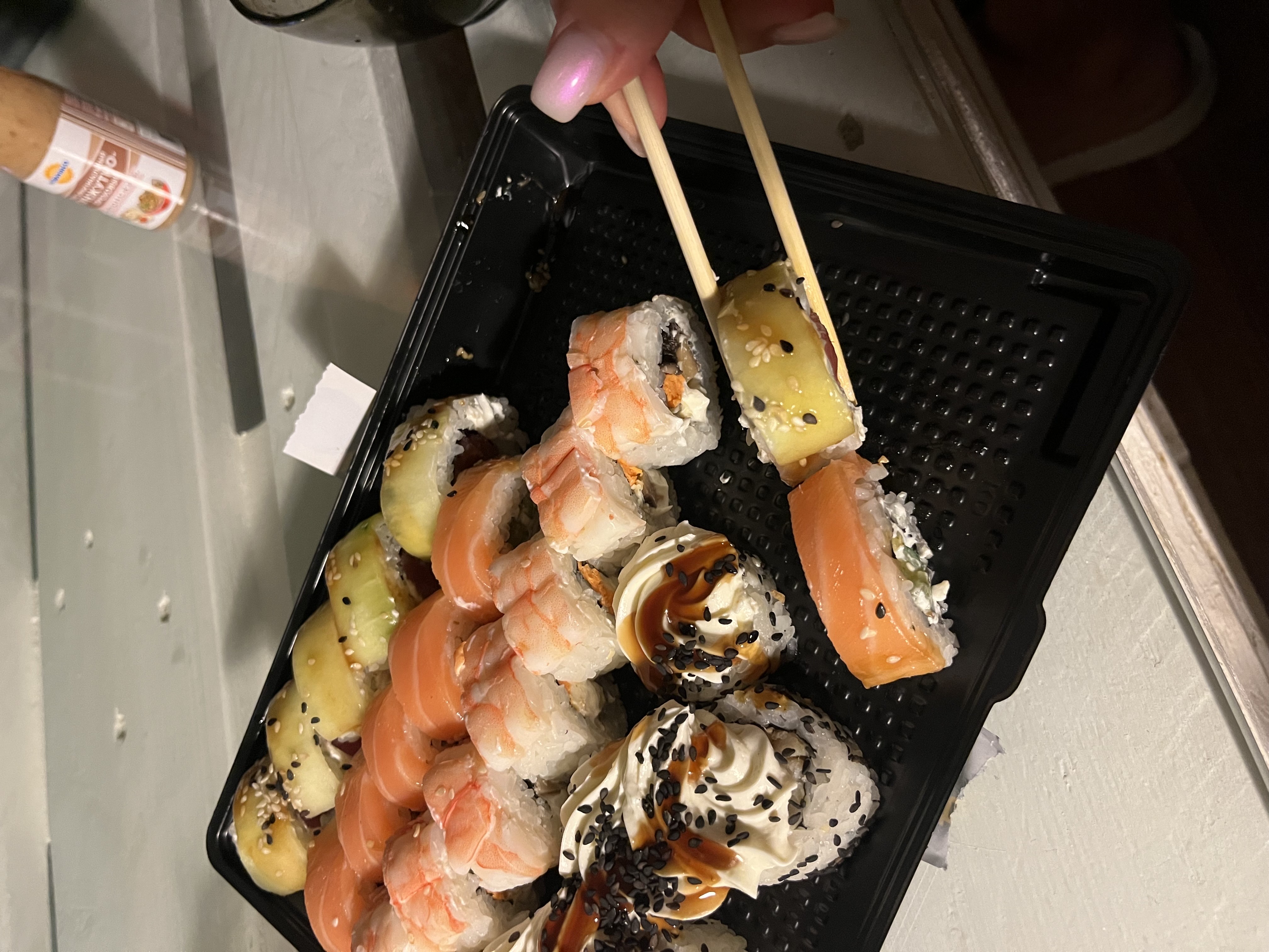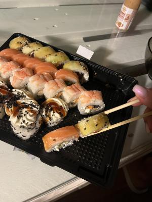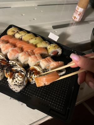 - На 1 суши-сет прилагается не более 4 комплектов палочек