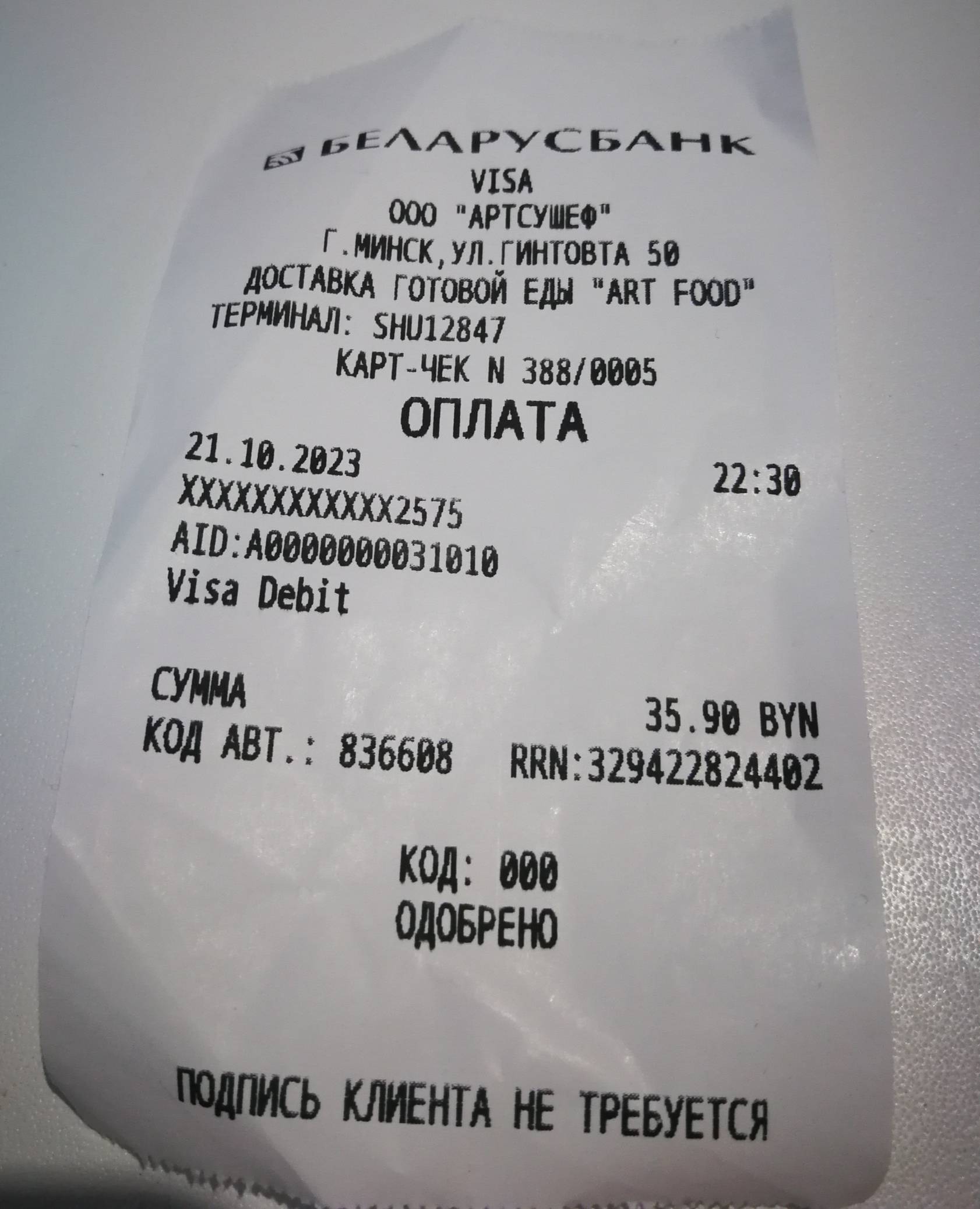 - Актуальный баланс бонусного кошелька можно узнать в мобильном приложении "ART FOOD - доставка Минск" на всех платформах