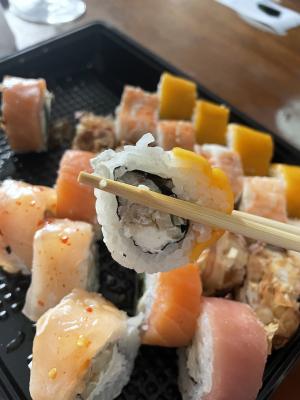 - На 1 суши-сет прилагается не более 4 комплектов палочек