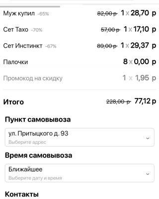 - При оформлении заказа online к итоговой стоимости автоматически добавляется стоимость промокода